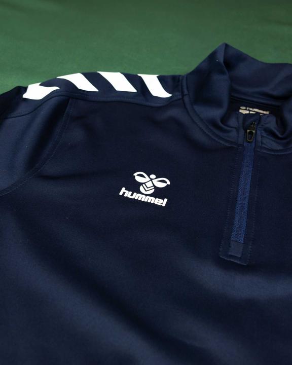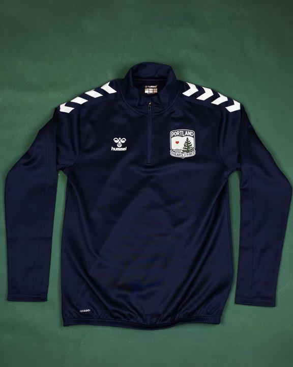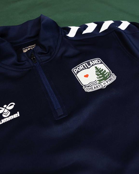 This unisex quarter zip long sleeve features the full-color Hearts of Pine crest on the left chest and the hummel logo on the right. It includes an elastic, cinched waistband for an adjustable fit.